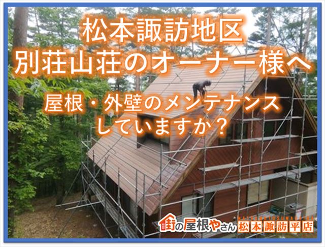 松本諏訪周辺にお住いの皆様こんにちは!いつも街の屋根やさんをご覧いただきありがとうございます。このページをご覧になっているということは、屋根について何らかのトラブル、お困り事をお持ちの方かと思います。今回はそんなお困りごとを修繕する費用が実際どのくらいかかるのかをお伝えしたいと思います。屋根修 ...続きを読む2023/06/5 松本諏訪地区の別荘のオーナー様へ屋根・外壁のメンテナンスはしていますか?