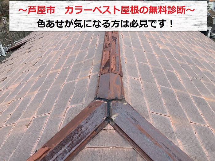 皆さんお疲れ様です!街の屋根やさん神戸西店です。今日は、西宮市のお客様より「バルコニー防水の剥がれが酷く雨漏りしている」とご相談を頂きましたので、無料点検へお伺いした時の様子をご紹介しましょう(^_^)/バルコニーには様々な防水材が施されていますが、稀にメンテナンスで間違った防水材を塗ってしまい、剥がれやひび ...続きを読む2023/05/31 芦屋市 色あせてるカラーベスト屋根のご相談!無料診断を実施します