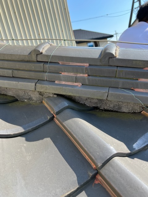 大垣市で行った瓦屋根の調査の様子をご紹介致します。「棟の瓦が外れてしまった。屋根の上にあるので見てほしい」と、お問い合わせをいただきました。 梯子を使い屋根に上がると棟の熨斗瓦が外れて屋根の上に落ちているのを確認しました。旨は4段積みです。棟 ...続きを読む