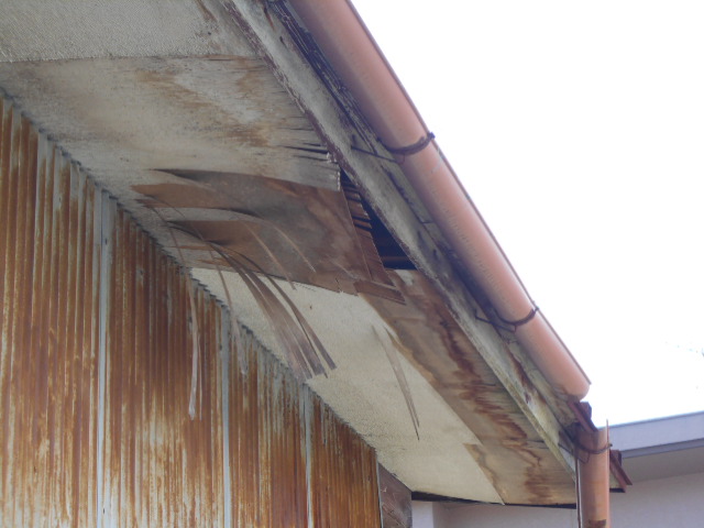 屋根塗装 塗装前 今回は初めての屋根塗装ということでした。遮熱塗料ご希望とのことで、アステックのスーパーシャネツサーモSiを使用することになりました。夏の紫外線を効果的に反射して、室内の温度上昇を抑える効果があります。真夏の暑さを軽減してくれるので、エアコ ...続きを読む2023/05/18 大垣市にて軒天の現場調査に行くと一部が強風によって飛散してしまっていました