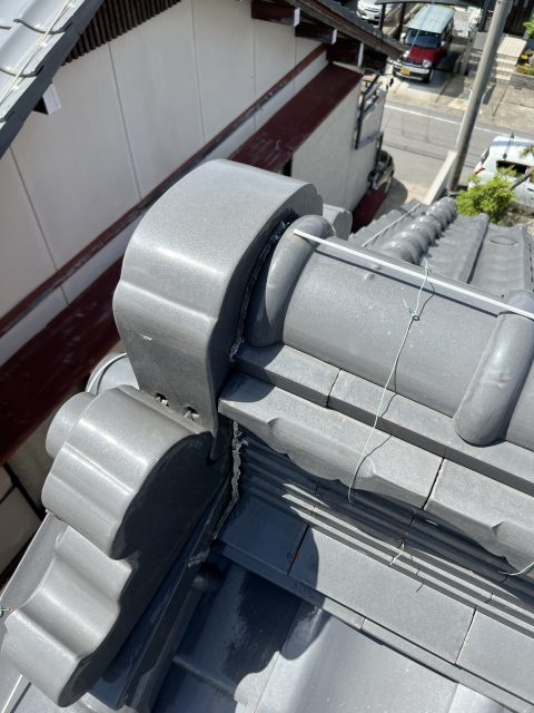 2023/05/13 本巣市で棟漆喰の劣化、棟取り直し工事をおこない落下の防止