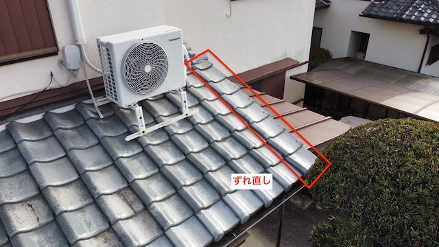 八幡市の屋根工事もついに第三弾、最終回の今回は依頼のきっかけになった玄関上の屋根の袖瓦のズレ直しの施工の紹介です。この部分ですが右のケラバとか右袖と言われる部分です、屋根に向かって見て右、左って感じです。ズレてしまってる右袖ですが屋根の端部になるので風当たりが他の場所よりも非常にキツく、瓦と瓦 ...続きを読む2023/04/30 可児市で瓦屋根の漆喰の劣化に伴う棟取り直し工事のご提案