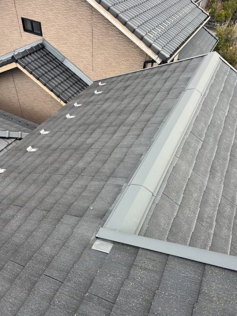 岐阜市にて実施した点検結果をご報告します。日本瓦の場合、耐用年数は50年以上あり、割れない限り長寿命です。そのため、定期的なメンテナンスが必要ないと思われがちですが、瓦以外の下地材や漆喰等の耐用年数はそこまで長くありません。 屋根の面が合わさ ...続きを読む2023/03/21 大垣市で築15年になるスレート屋根では、塗膜の劣化から北側にコケやカビの繁殖が目立ちました