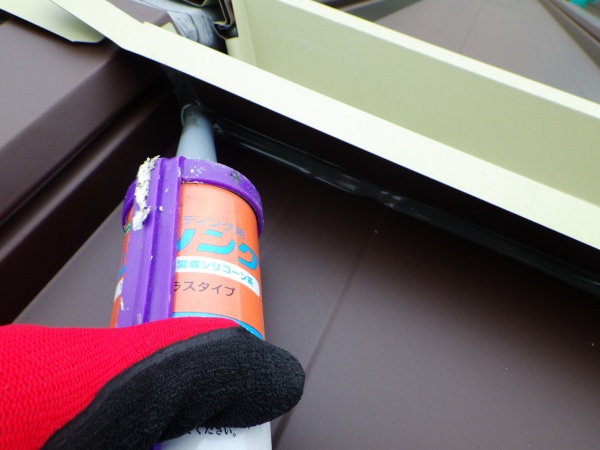 宇都宮市の瓦棒屋根カバー工事でエプロン面戸を取り付けました。 水上面戸のシーリング中です。 45ロックの棟側に差し込んだ水上面戸と、45ロックルーフの隙間にシーリング材を塗布して ...続きを読む2023/03/13 新潟市西区にて波板ポリカ屋根が飛散したので張り替えたいとお問い合わせを頂きました