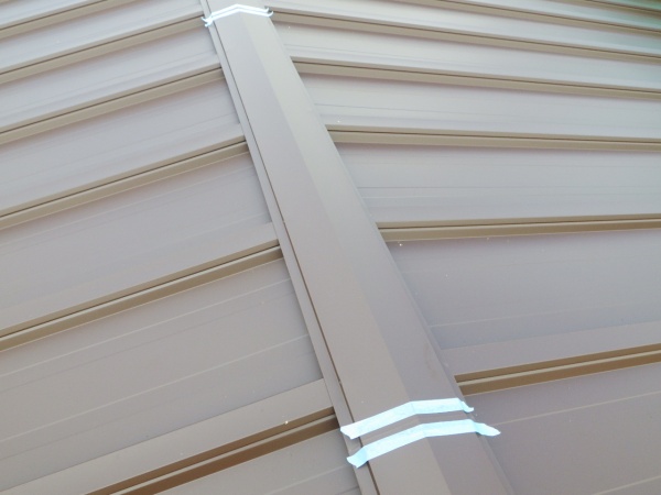 宇都宮市でU瓦から45ロックに葺き替え工事が完工しました。 シーリング用の養生をしました。 板金の繋ぎ目や雨水が入りそうな場所にシーリングをする場合、余分な箇所にシーリング材が付かないようにマスキングテープで養生をします。 板金の継ぎ目には、内部にシーリング材を塗布してから繋いでありますが、表 ...続きを読む2023/03/13 宇都宮市の瓦棒屋根カバー工事でエプロン面戸を取り付けました。