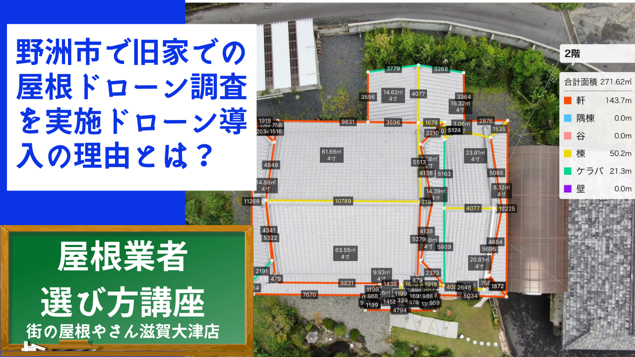 こんにちは!街の屋根屋さん大阪吹田店です(^^)/先日、箕面市にお住まいの方から「アパートの軒先のモルタルが落下してしまって・・」というご相談のお問い合わせをいただきました。お問い合わせいただいたのはアパートのオーナー様で、モルタルが一部落下しているのに気づかれたそうです。目の前が道路になっており、さらに落下 ...続きを読む2023/03/7 野洲市で旧家での屋根ドローン調査を実施ドローン導入の理由とは?