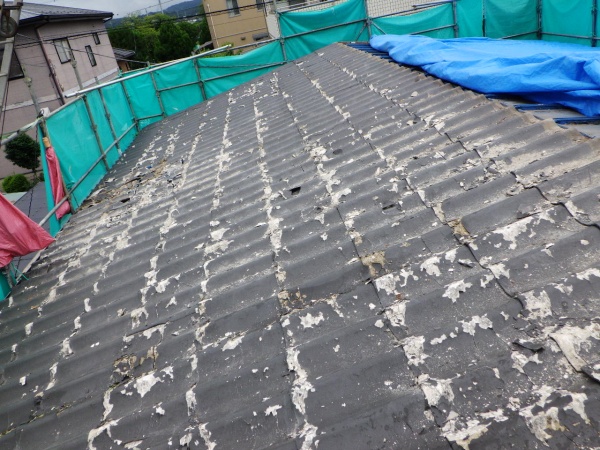 宇都宮市で波型スレートカバー屋根の葺き替え工事が着工しました。 施工前の波型スレート屋根の状態です。 ノンアスベストの波型スレート屋根で、表面が劣化して割れ表面が白く素地が見えて ...続きを読む2023/03/2 名古屋市緑区で経年劣化により棟瓦が外れかけていた棟を新しく