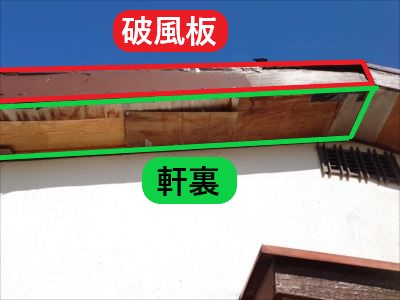 台風被害に遭い、被害の大きい破風と軒裏廻りの調査を行いましたお客様より、数年前の台風被害に遭った破風と軒裏部の修理依頼をいただいたので、現地調査に伺いました。当時ご自身で応急処置をしていたが、特に被害が大きい『破風』と『軒裏』廻りきっちり直したいとのことでした。他にも被害を受けている箇所がある ...続きを読む2023/03/2 大阪市住之江区にて風災被害に遭った破風板と軒裏の修理|その他被害箇所の補修工事も行いました
