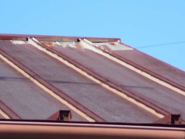 大垣市にお住いのお客様より「軒天ベニヤが剝がれてボロボロの状態です。一度見てほしい」とのご相談をいただきました。早速調査に伺いました。軒天はベニヤに白の塗装がしてありました。築年数がかなり経過してメンテナンスがされていませんでした。軒天は雨の当たるところではありますが外部の空気がたちこもる所になります。ベニヤ ...続きを読む2023/02/28 大垣市 カラートタン瓦棒屋根が錆びてきていますので雨漏りがしないか心配です。屋根無料調査