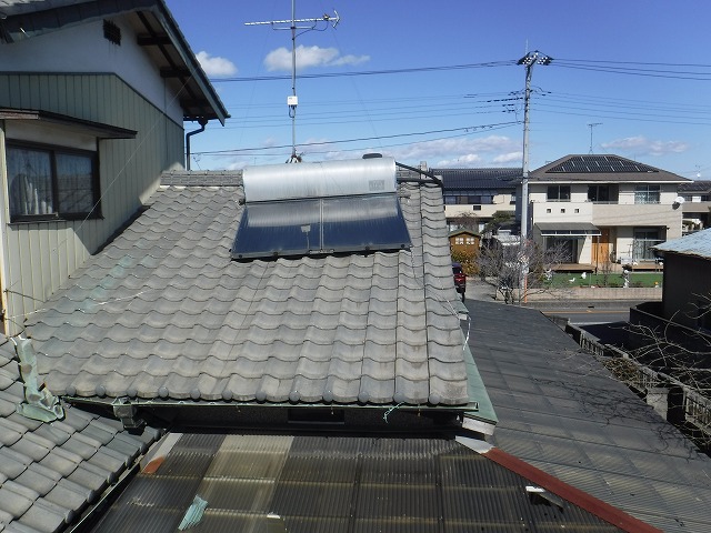 こんにちは、「街の屋根やさん西条・新居浜店」店長の丹 基徳(たん もとのり)です。西条市にある神社の拝殿の屋根の瓦がズレているので修理してほしい。とのお問い合わせをいただきました。現地で状況を屋根調査すると、拝殿屋根の降り棟の鬼瓦がズレていました。この状態では鬼瓦が落下して非常に危険なので早急 ...続きを読む2023/03/3 坂戸市でソーラー湯熱温水器が強風で動いてしまい撤去してほしいとの事で調査依頼