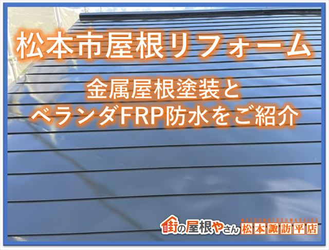茨城県の皆様こんにちは、街の屋根やさん水戸店です。本日は、太陽光パネルが設置された屋根の調査の模様をお届けいたします。ボロボロに剥がれている屋根の葺き替えをご検討中とのお客様より、当店へ無料見積りを兼ねた調査のご相談をいただきました。屋根の状況をしっかり見極め、最適なメンテナンス方法を導き出したいと思いますヽ ...続きを読む2023/02/22 松本市屋根リフォーム|金属屋根塗装とベランダFRP防水塗装をご紹介