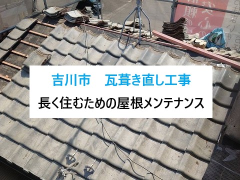 狭山市のお宅より、築30年が経ち外装リフォームのご相談です。屋根は見えないし登ったことがないので、状況を確認してほしいとのこと。外壁は、壁面の色褪せと亀裂(ひび割れ)が見受けられるとのことで、外装全体のリフォームをと連絡がありました。 ...続きを読む2026/02/5 吉川市 築40年以上の瓦屋根を葺き直し工事で安心に!長く住むための屋根メンテナンス!