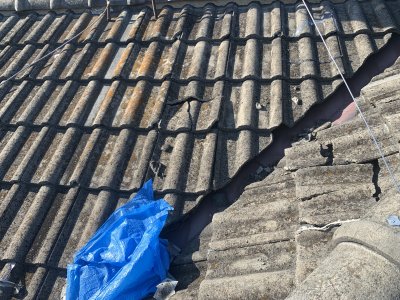 連絡を受けて屋根の点検前にとりあえず現状を確認しました。コロニアル1枚が真ん中で割れてベランダ上の波板の上に乗っていました。ポリカーボネート製のストレート板で新しいこともありベランダまで落下はしてないものの波板には横一文字にひびが入っていました。 ...続きを読む2023/02/16 芦屋市でテラス屋根点検!剥がれた波板屋根設置のため無料点検をおこないました