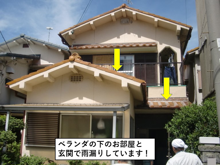 貝塚市の屋根点検のご紹介です。「台風21号で屋根の瓦がめくれたんです」とお問い合わせいただき、修理のお見積りを出させていただくための現地調査にお伺いしました。M様邸は2階建ての住宅で和瓦の屋根です。屋根に上がって点検すると、棟の冠瓦(一番上に施工する瓦)が3か所で飛散していました。棟とは屋根と屋 ...続きを読む2025/10/20 忠岡町の雨漏りの現地調査/ベランダの下の部屋に雨漏りしていました