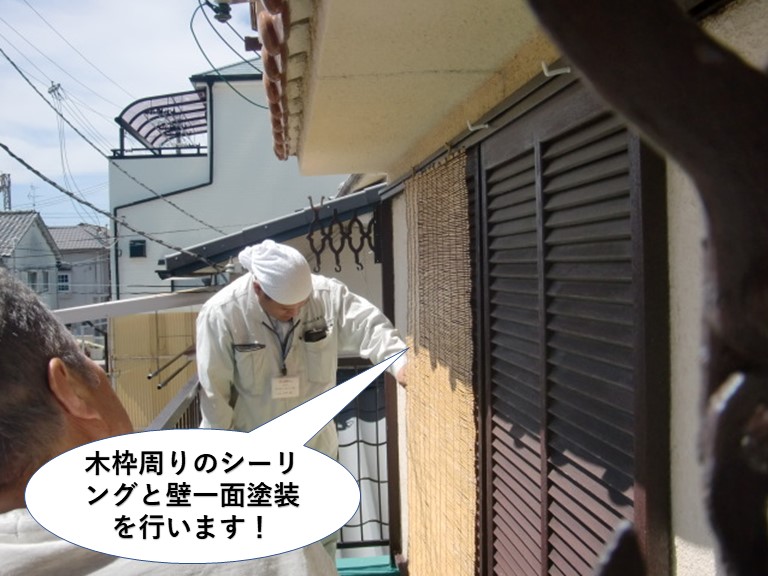 2025/10/20 忠岡町のベランダの外壁のひび割れ補修と撥水塗料を用いた塗装