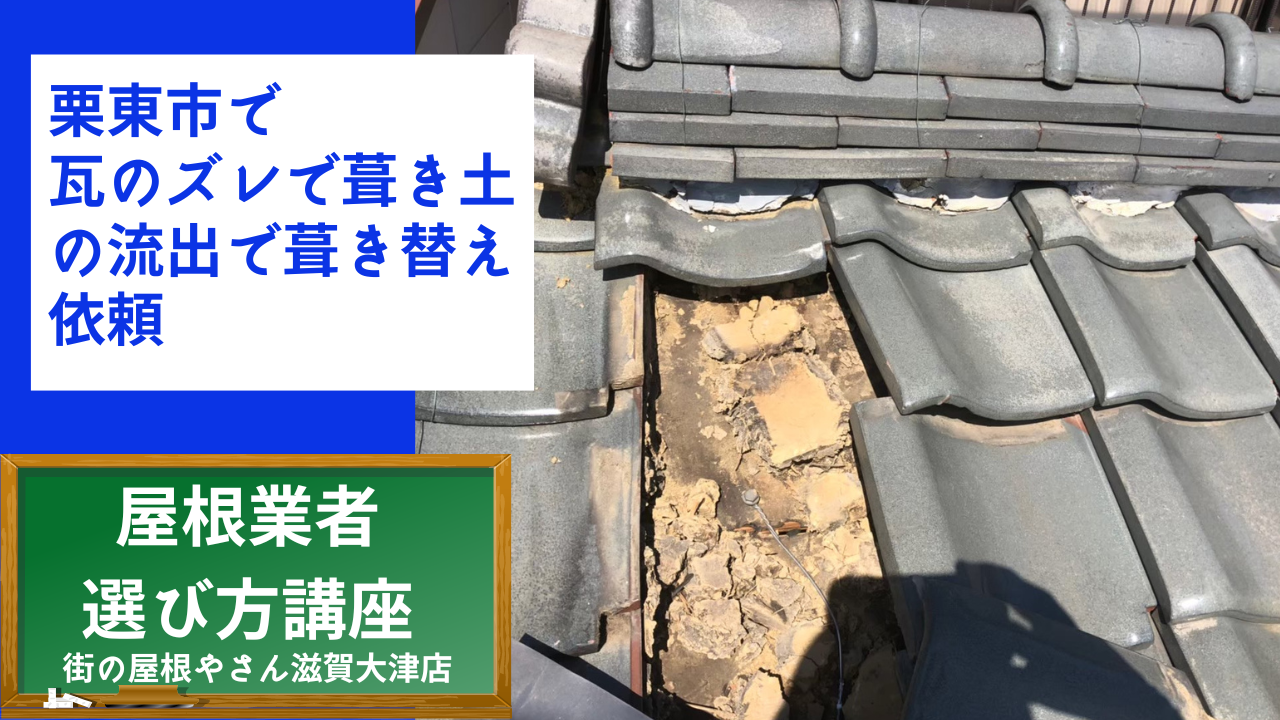 こんにちは!街の屋根やさん滋賀大津店です!今回は滋賀県草津市にお住いの方からの現場調査依頼でお伺いしました。お問合せのきっかけ築年数32年の木造住宅で、いぶし瓦の瓦屋根の漆喰の劣化による指摘を受けて指摘を受けた際には、いきなりの事だったので屋根の調査をお願いしましたが、冷静になるとかなり不安になり、インターネ ...続きを読む2023/02/1 栗東市で一軒家の瓦屋根の破損で葺き替え工事のご相談で無料点検