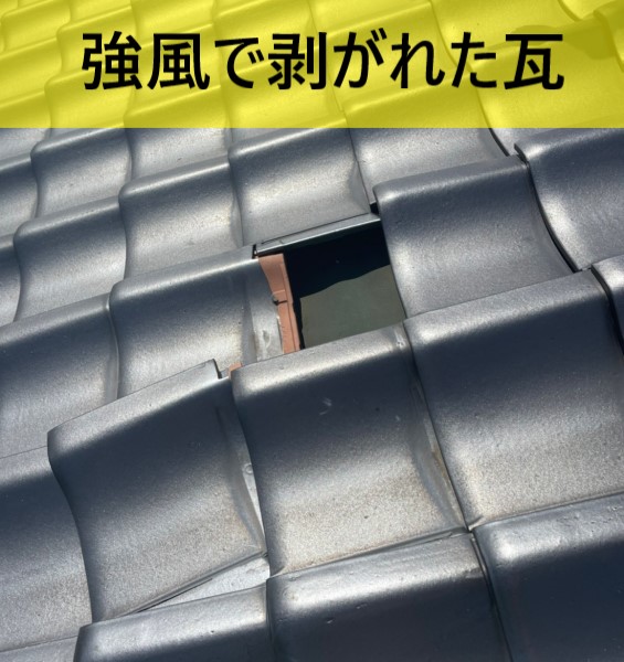 大月市で現地調査のご依頼をいただき棟板金の浮きを発見しました。ネットで検索して街の屋根やさん山梨店へお問い合わせいただきました。ありがとうございます!現地調査にお伺い屋根に登ってみると写真のように棟板金が浮いて ...続きを読む2023/01/24 菊池郡菊陽町にて強風で瓦が剥がれた現地調査 このままでは危険なので応急処置しました