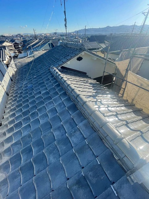 葛飾区柴又にお住まいのお客様より「これまでにメンテナンスを行った事がなく築年数が経過してしまった為、そろそろメンテナンスしなくては行けないと思う。調査、見積もりをお願いしたい」とご相談をいただき調査に伺いました。 現地調査の様子になります。屋根形状は寄棟で屋根材にはスレートが使用されておりました。築30年が経過 ...続きを読む2022/12/26 姫路市にて大屋根の葺き替え工事をしました。(瓦~フレンチ)