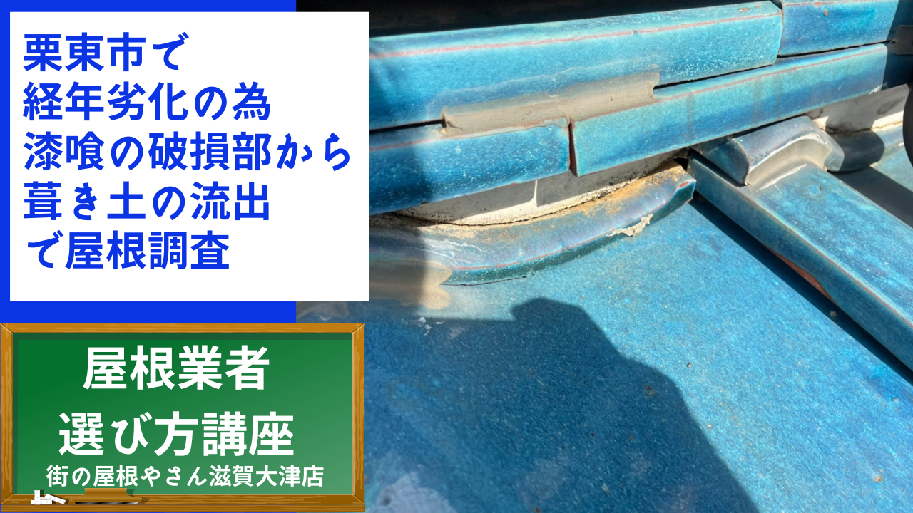 大垣市にお住いのお客様より「屋根が黒く汚れてきています。塗装出来ますか」とのご相談をいただきました。早速調査に伺いました。屋根はカラーベスト屋根でした。築年数がかなり経過してメンテナンスがされていません。カラーベストは平型化粧スレートのことでセメントとケイ砂を原料として繊維質で補強して成型される屋根材です。薄 ...続きを読む2022/12/27 栗東市で漆喰部分から葺き土の流出とで調査依頼で屋根調査を実施