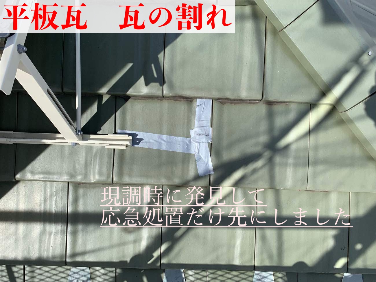 墨田区菊川にお住まいのお客様より、お住まい2階の軒天に雨染みのようなものができているので、異常がないか確認してほしいとお問い合わせをいただきました。築30年程が経過しているが、屋根に関しては過去にメンテナンスを行ったことがないとのことでした。さっそく現地へお伺いし、調査を行います。 現地にて被害箇所を ...続きを読む2022/12/22 名古屋市南区で割れた瓦の差し替えとビスの締め直し修理