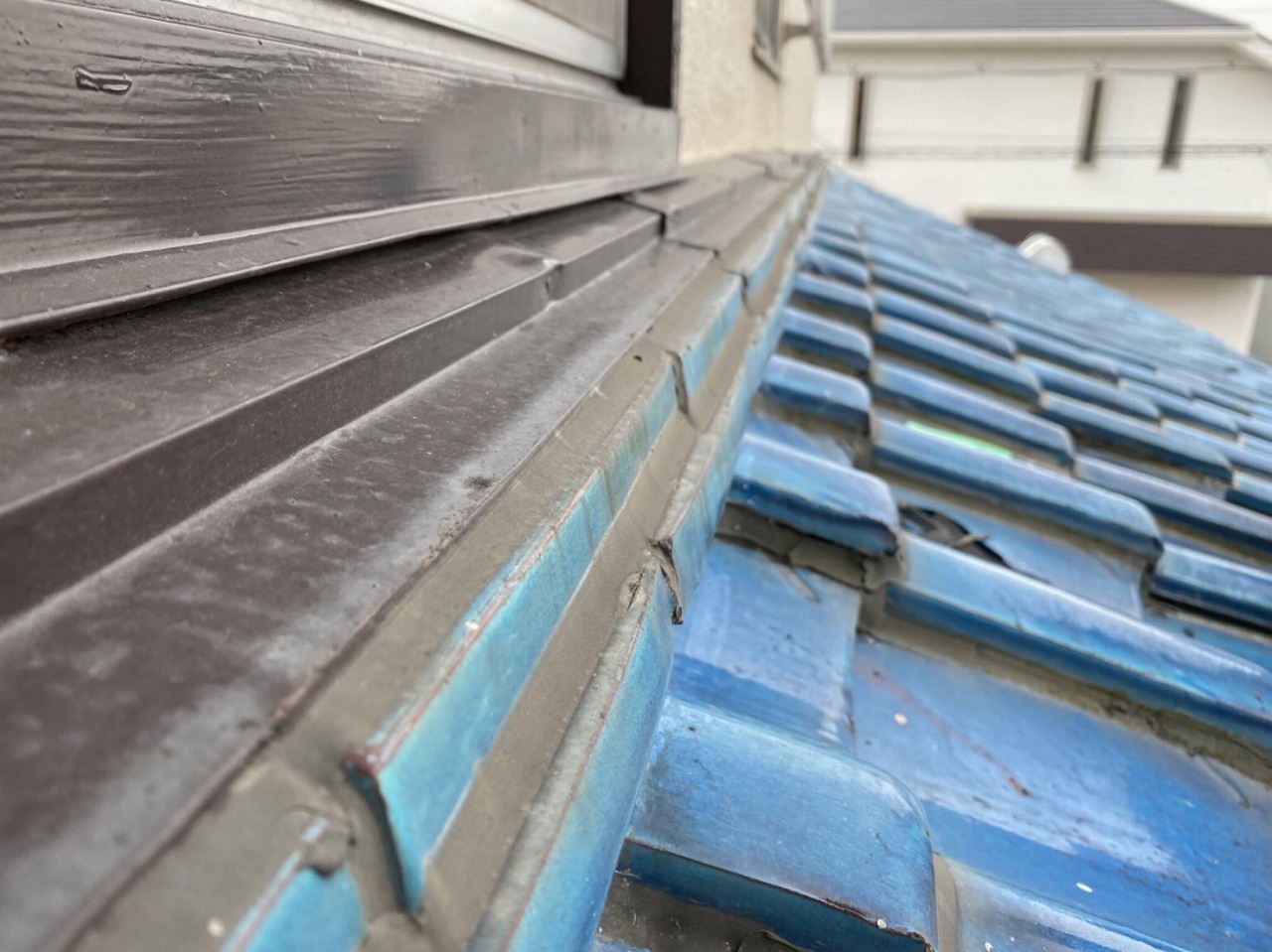 現地調査時の写真です。屋根の瓦には、全面ラバー工事を施してありました。地震などの強い工法ではありますが、雨水の通り道なども塞いでしまい雨漏りの原因となる工事ですので現在では、このような工事は行いません。 コーキング材の劣化など ...続きを読む2022/12/22 堺市南区にて台風で瓦屋根や雨樋に被害を受けた現地調査の様子