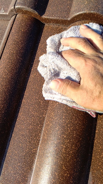 本日仕事納め。拭き掃除がメインです! 今日は思った程霜が無く、少し湿っている程度なので早速作業を開始します。切り物が多かった正面側は、思った以上に粉塵が付着して、白っぽくなっています。タオルを濡らして軽く絞り、一枚一枚丁寧に拭き取ります。しかし、一回では納 ...続きを読む2022/12/18 大阪市で屋根の葺き替え工事(カバー工法)