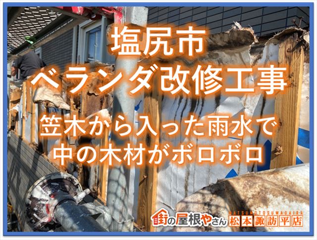 こんにちは、「街の屋根やさん西条・新居浜店」の丹 基徳(たん もとのり)です。前回、屋根調査で雨漏り原因を調べた今治市の木造2階建て住宅の屋根葺き替え工事をはじめます。前回の屋根調査のブログ「今治市で二階屋根の雨漏りにお困りのお客様より屋根葺き替え希望」まずは雨漏り原因の既存のセメント瓦を解体 ...続きを読む2022/11/10 塩尻市ベランダ改修工事|笠木から入った雨水で中の木材がボロボロの危険なベランダ