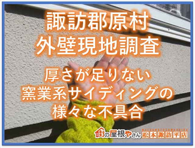 尾張旭市で屋根の点検をしてきました。見てくださいこの青空!!屋根点検にふさわしいほどの快晴でとても気持ちがよかったです。さて連休も近づき、それが終わると梅雨が待っています。梅雨になりますと雨が増えますので比例して雨漏りの問い合わせが増加します。雨漏りする前に屋根の状態を点検してみてはいかがでし ...続きを読む2022/11/30 諏訪郡原村外壁現地調査|厚さが足りない窯業系サイディングの様々な不具合