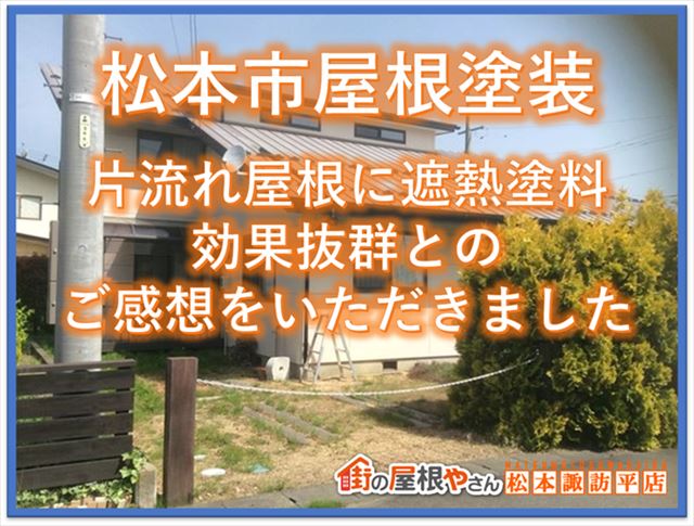 稲城市矢野口にてお住いのお客様より、「以前塗装した屋根がまた色褪せてきているので、点検をしてほしい」とのご相談を頂きました。事前にお話をお伺いしますと、築35年程になる化粧スレートの屋根ということで、そろそろ屋根材の寿命が近いのではないかとお考えになられているようでした。スレート屋根のお手入れは塗膜や屋根材の傷み具合を中心にし ...続きを読む2022/11/8 松本市屋根塗装|片流れの屋根に遮熱塗料|効果抜群とのご感想をいただきました