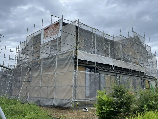 宇都宮市でカーポート屋根波板の交換工事をしました。 施工前の全景です。 足場のメッシュシートで見えませんが、リシン吹付塗装壁の外壁塗装工事とカーポート屋根の波板交換工事の着工です。 ...続きを読む2022/11/8 鈴鹿市で傷んだ破風を塗装工事、併せて雨樋も塗装しました