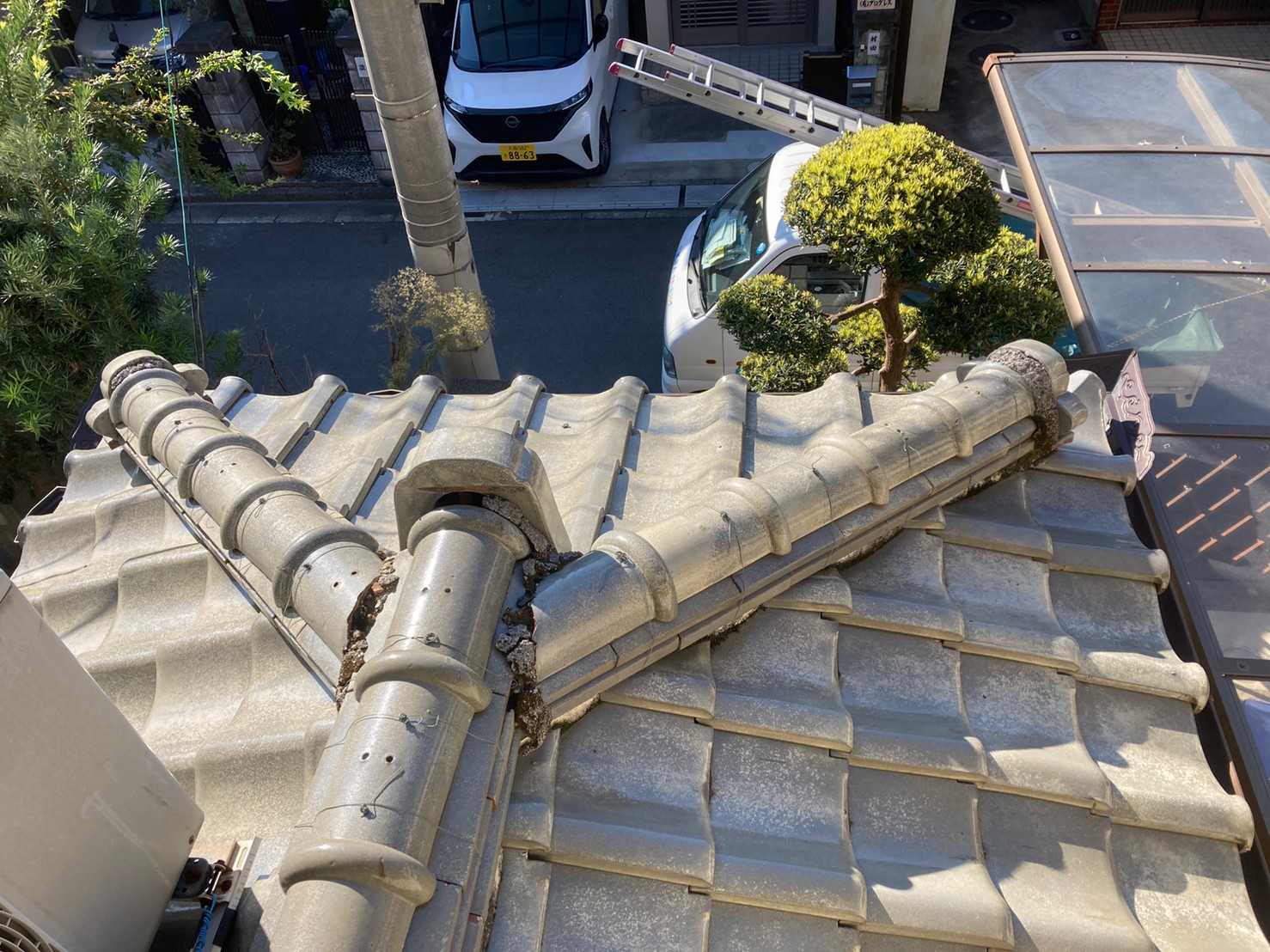 こんにちは、街の屋根やさん熊本店です。本日のブログでは、熊本市東区のお客様よりベランダのエスロン波板が割れたとご相談いただき、現地調査を行った様子をご紹介します。波板屋根にはポリカとエスロン(塩化ビニール)の2種類の波板が使用されており、エスロン波板に破損が見られました。破損した箇所のみの一部張り替えでは数年 ...続きを読む2022/10/31 松山市で強風で壊れた釉薬瓦の屋根を修理してお客さまも安心