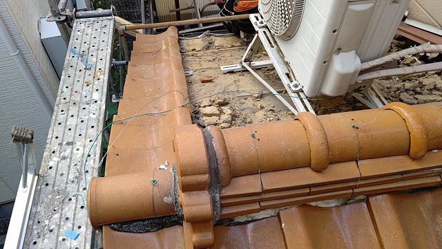 2022/10/31 松山市で台風の強風で瓦が飛ばされた木造2階建ての釉薬瓦の屋根