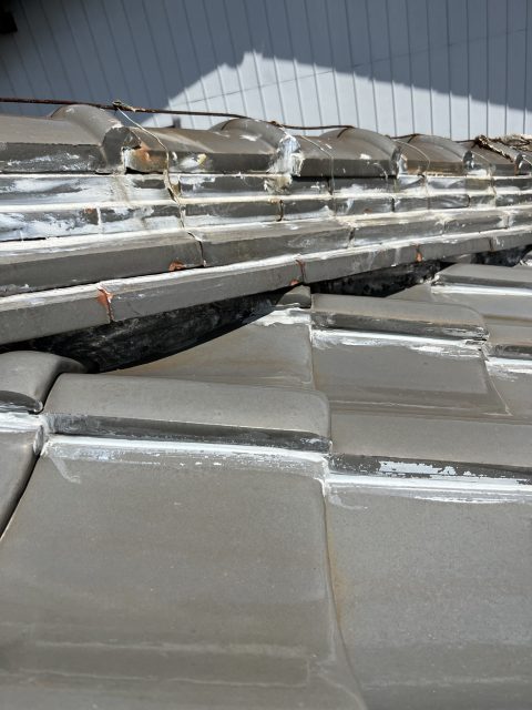現地調査時の写真になります。50年ほど経過しており和瓦も所々傷みがきていました。 棟瓦の部分の写真ですが、漆喰が剥がれていた所に無理やりセメントを塗り固めていました。見た目もすごかったですが、棟瓦に雨水が侵入してしまうと水の逃 ...続きを読む2022/11/11 みよし市にて3階のお部屋に雨漏りが発生!陸屋根の防水か?
