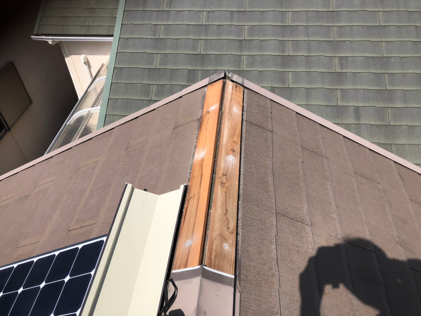 今回は屋根の色褪せが気になっている方へ屋根の点検や劣化状態・メンテンナンス方法をお伝えしていきます。主に色褪せによるメンテナンスが必要になる屋根材はスレートです。コロニアルやカラーベストとも呼ばれていますが、物は全て同じです。まずは自分の家がどのような状態なのか、どの様に劣化しているのか知る ...続きを読む2022/10/20 京都府城陽市にて棟板金が剥がれ雨漏りが発生した住宅の板金補修工事