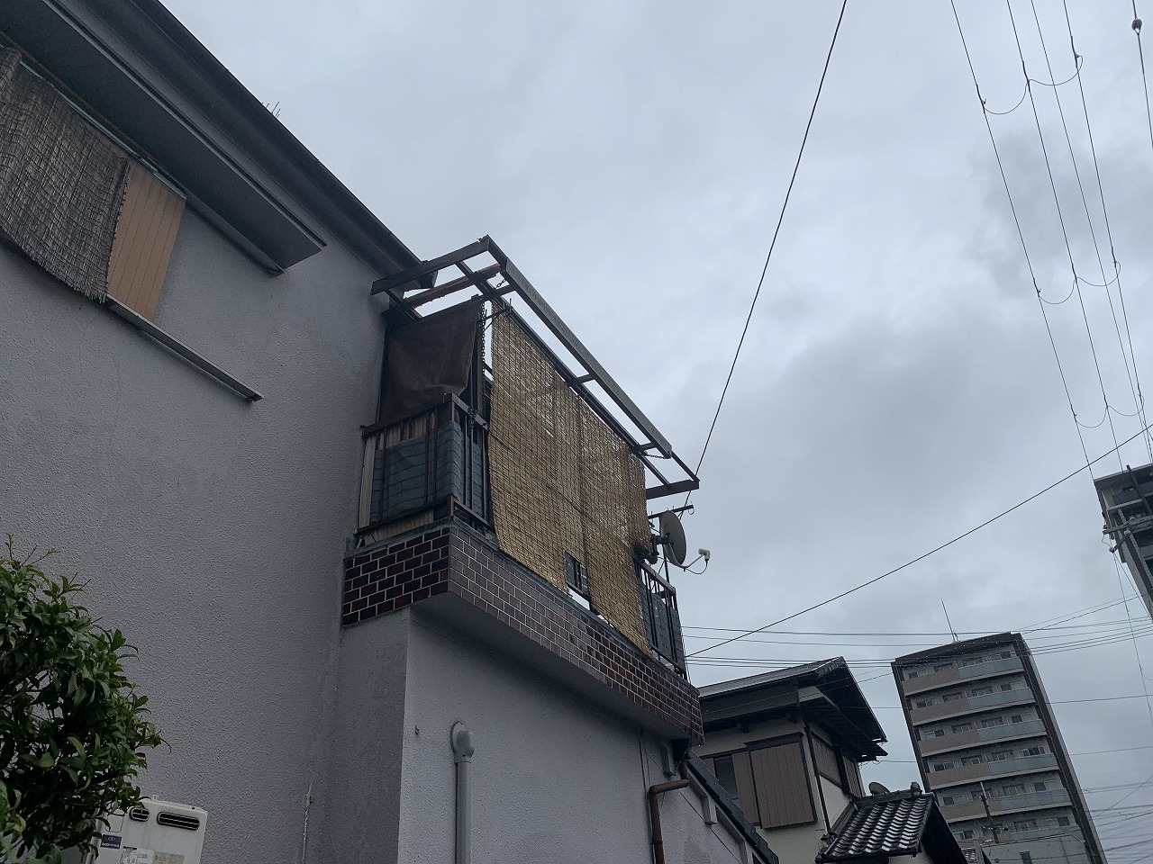 現場調査状況 雨漏りが生じて2階の天井が垂れ下がるほど傷んでいました。原因は瓦が割れているためでした。瓦の下の屋根土も昨日の雨でかなり濡れていました。普段外壁などは目につくものですが、屋根の上を見る機会はあまりないと思います。定期的に ...続きを読む2022/10/7 枚方市 台風の影響で飛散していたベランダ波板を調査・修繕してきました。