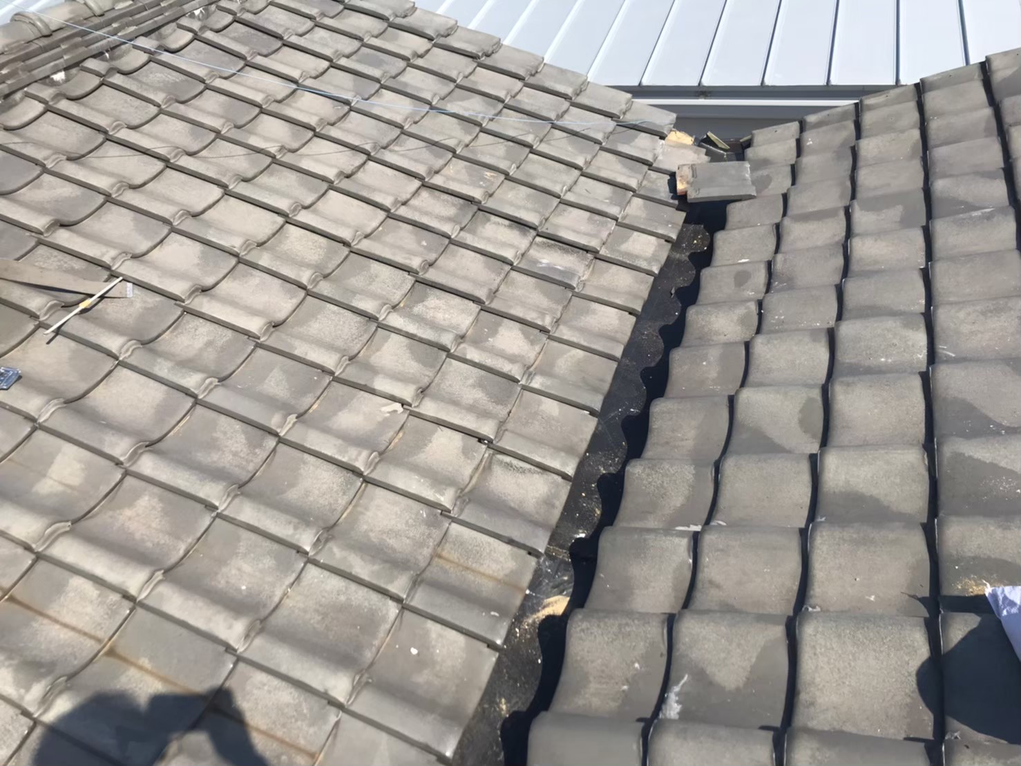 施工前の写真になります。瓦の色も斑になっていて寿命がきていることがわかります。この状態では、どこからでも雨漏りしやすく原因を見つけることが困難です。ですので葺き替え工事を御提案させて頂きました。 屋根の上にある、瓦・土をめくっ ...続きを読む2022/10/5 龍ヶ崎市で太陽光パネルが設置された片流れ屋根のシート防水で雨漏り