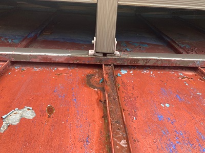 みなさまこんにちは、街の屋根やさん和歌山店です。今回ご紹介する現場ブログは瓦屋根に生えた植物の撤去工事についてです。土葺きの瓦屋根の場合、葺き土に付着した種子が成長し、屋根に雑草や植物が生える事があります(>_<)岩出市のお寺では、大棟(おおむね)に積まれた棟瓦(むねがわら)から太い枝の植物が伸び ...続きを読む2022/09/22 高松市での屋根瓦棒交換・雨漏り対策・葺き替え・ルーフィング・防水シートめくれ
