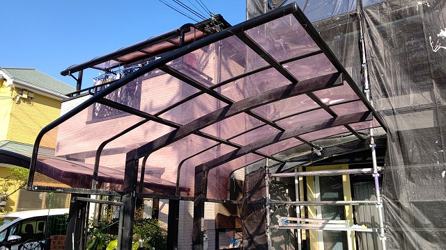 追加工事:ベランダ、カーポートのアクリル板交換 一階部分のカーポートのアクリル板!奥のアクリル板2枚は足場着工時に捲っています。(足場の縦地が干渉してしまう為) 2階ベランダ部分のアクリル板は、現在外壁塗 ...続きを読む2022/09/23 岩出市で寺の棟瓦に太い根の植物が生えていたので、撤去しました