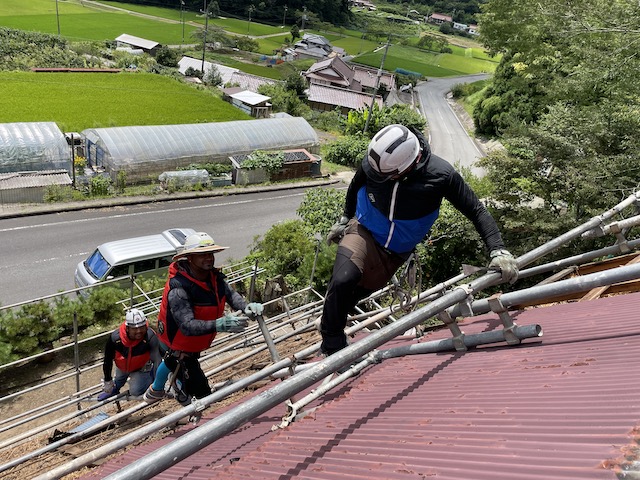 急勾配の屋根に使用する屋根足場 今回も広島市安佐北区の現場よりレポートさせていただきます。劣化した棟板金やトタン屋根を撤去するにあたって必要な屋根足場ですが、急勾配の屋根にはこの足場がないと作業ができません。また、この屋根足場は単管一本の上を歩くため足を踏み外すと大変な大 ...続きを読む2022/09/24 広島市安佐北区で経年劣化したトタン屋根をガルバリウム鋼板の屋根材に葺き替え!