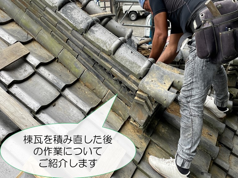 みなさまこんにちは!街の屋根やさん和歌山店です。前回の現場ブログで、棟瓦に生えた植物を撤去する様子をご紹介しました。植物は根を張るので、棟瓦を一度仮撤去しないと根まで抜くことができません。棟瓦を仮撤去し雑草を抜いたら、棟瓦を積み直すのですが、その時に漆喰とステンレス線、コーキングを使って瓦を固定しましたので、 ...続きを読む2022/09/17 岩出市でお寺の降り棟の瓦を仮撤去し、雑草の根まで取り除きます