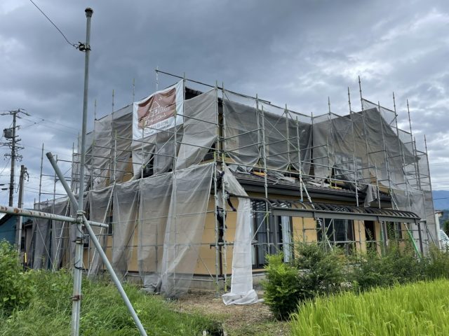 皆さんこんにちは。街の屋根やさん飯田・伊那店の下平です。今回のブログでは現在施工中の飯田市駄科のお宅からコーキング打ち替えと塗装作業のようすのご紹介です。前回のブログで無料点検のようすを紹介しましたが、足場を組み立てて工事がスタートしました。無料点検のようす➡飯田市 経年劣化で割 ...続きを読む2022/09/17 明石市にて、大屋根の漆喰工事