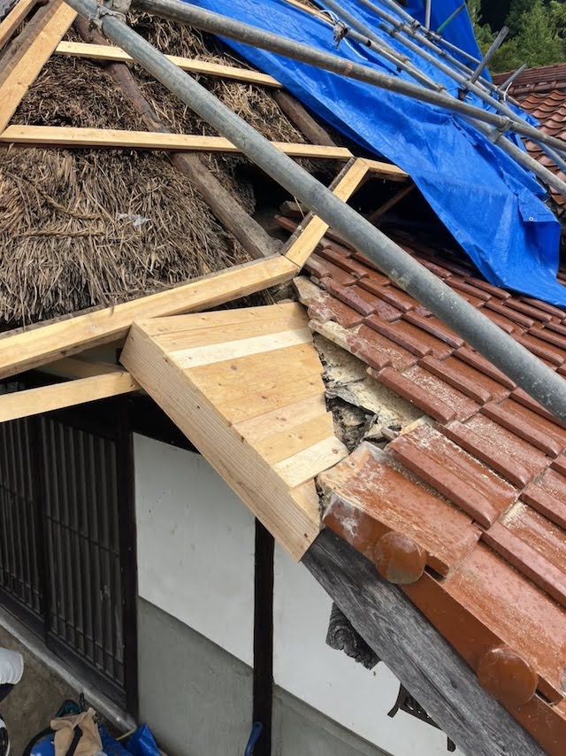 新潟市東区にお住まいの方より、先日の台風の時に天窓から雨漏れしたので見て欲しいとお問い合わせを頂きました。こちらのお宅は以前に玄関の天窓から雨漏れしたとご相談・工事のご依頼を頂いていたお宅です。以前の現地調査記事→新潟市東区にて築15年板金屋根に設置されている天窓から雨漏れ発生したとお問い合わせを頂 ...続きを読む2022/09/30 新潟市西蒲区にて築40年以上の農舎瓦屋根が落下しているので修繕したいとご相談を頂きました