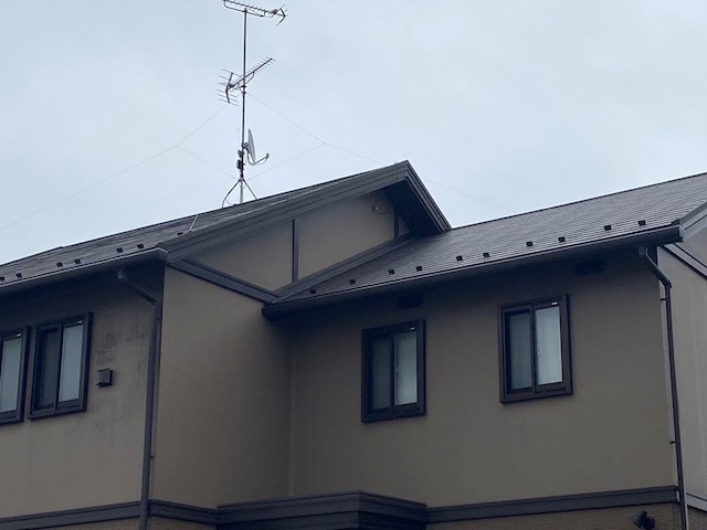 日野市高幡にて築21年になる化粧スレート屋根の調査にお伺いさせていただきました。メンテナンスとして屋根塗装をご検討中との内容で承りましたが、スレート屋根は状態によって塗装ではなく屋根カバー工事などが必要になることもあります。しっかりと状態を見て、今後に不安を残さないような方法をご提案させていただきます。 ...続きを読む2022/08/30 名古屋市港区で台風によって飛ばされた棟板金の修理をしてきました