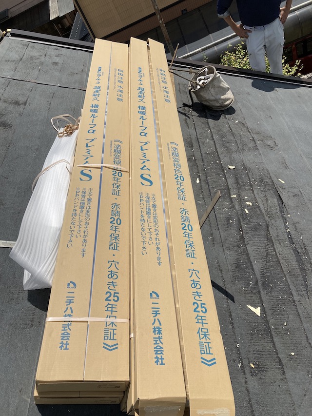 ガルバリウム鋼板屋根材 今回も東広島市でガルバリウム鋼板の金属屋根材をカバー工法にてリフォームする現場レポートをお伝えいたします。画像にあるのがカバー工法に使用するガルバリウム鋼板の屋根材です。前回のガルバリウム鋼板の屋根材についての解説をご覧になりたお方 ...続きを読む2022/09/1 東広島市で主流のガルバリウム鋼板屋根材で経年劣化したスレート屋根をカバー工法!