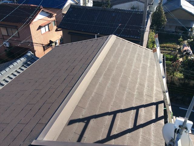 こんにちは!街の屋根やさん大阪吹田店です(*^-^*)今回は、門真市でおこなった折半(せっぱん)屋根の塗装工事の模様をお届けしましょう!折半屋根とは金属屋根のことで、通常の屋根に施工される下地材「野地板(のじいた)」を取付けない屋根ことをいいます。カーポートや倉庫、自転車置き場などで見かけることの多いのが折半 ...続きを読む2022/09/10 吹田市 瓦からカラーベストへのリフォーム後、清掃まできっちり!