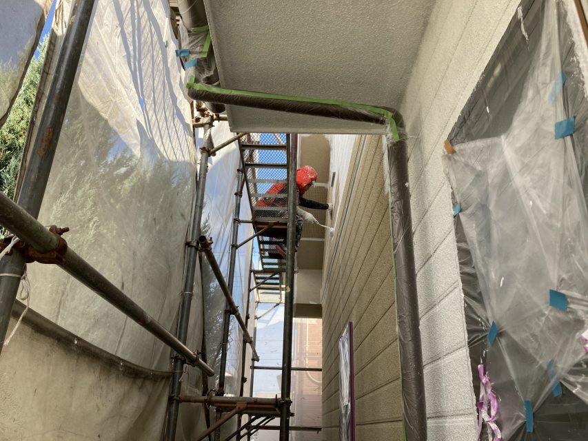 外壁塗装の下塗り 今回も東広島市で外壁塗装の現場レポートをお伝えします。前回は、コーキングの打ち直しが終わった後に、下塗りの作業へと移っていく工程をご紹介いたしました。元々ベージュ色の外壁に、ホワイト色の下地材を下塗りし、塗料がよく密着するようにしました。今回は下塗りの完 ...続きを読む2022/08/25 東広島市でチョーキング現象が発生している外壁を塗装します