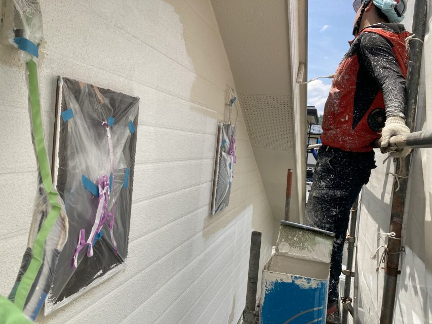 上塗り開始! 今回も東広島市で、外壁塗装工事を行っている現場レポートをお届けいたします。前回は、下塗りの作業工程で真っ白に下地塗料を塗りました。しっかり乾燥させた後、上塗り作業へと移っていきます。前回の下塗り塗料の種類をご覧になりたい方はこちらからどうぞ! ...続きを読む2022/08/25 東広島市で窯業系サイディングの外壁を塗替え工事