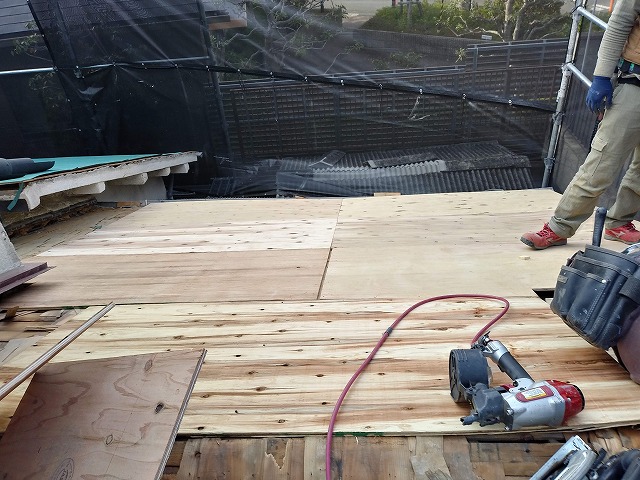 2022/08/19 摂津市 自然災害で割れた南面スレート屋根を葺き直します!