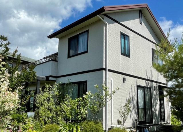 生駒市で外壁塗装工事を任せていただいております。前回のブログでは、外壁塗装がひと段落し、雨樋や付帯部分を塗装させていただきました。工事全体も大詰めに差し掛かり、いよいよ完成へと進んでまいりました。今回の作業では、お住まいの玄関部分にあります門塀の塗装作業と、お住まい全体の塗装部分の最終調整を行っていきます。ど ...続きを読む2022/08/7 生駒市で外壁サイディングをシリコン塗料を使って塗装工事の完成です