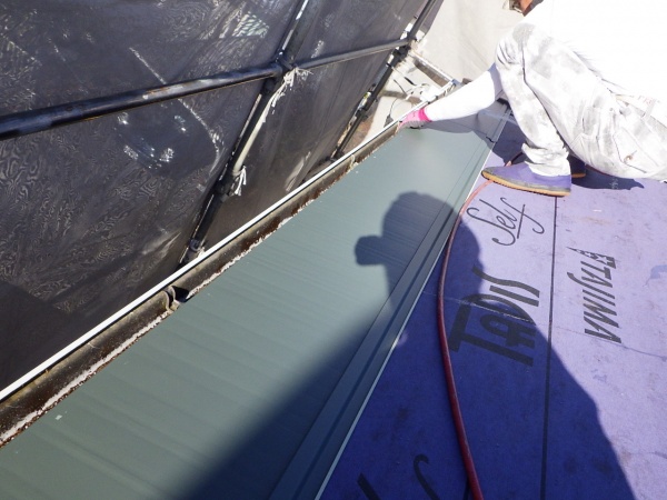 那須塩原市でスレート屋根の中、上塗り塗装をしました。 棟板金同士の繋ぎ目にシーリング用の養生をしてから、シーリング材を塗布して乾燥前に養生を剥がしました。 板金同士の繋ぎ目の内 ...続きを読む2022/08/4 越谷市で雨漏れに繋がる屋根の劣化をご紹介